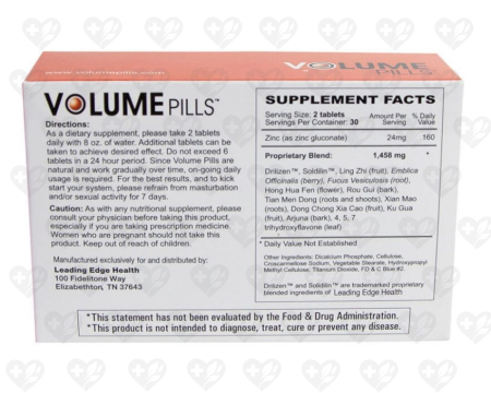 精液量を増加させるだけでなく、ボリュームピルは性的幸福のいくつかの側面を改善するように設計されています。これらは性欲と性的スタミナを高め、性的活動中のエネルギーとパフォーマンスを維持するのに役立ちます。亜鉛、ドリリゼン、ソリディリンなどのハーブ成分は、性欲と性能を向上させることが証明されているため、特に選ばれています。亜鉛は性的スタミナとドライブに不可欠なテストステロンの生産において重要な役割を果たし、ドリリゼンとソリディリンはそれぞれ血流と性的反応を改善することで知られています。これらの包括的な利点により、ボリュームピルは性的能力と生殖健康を総合的に向上させたい男性にとって優れた選択肢となります。